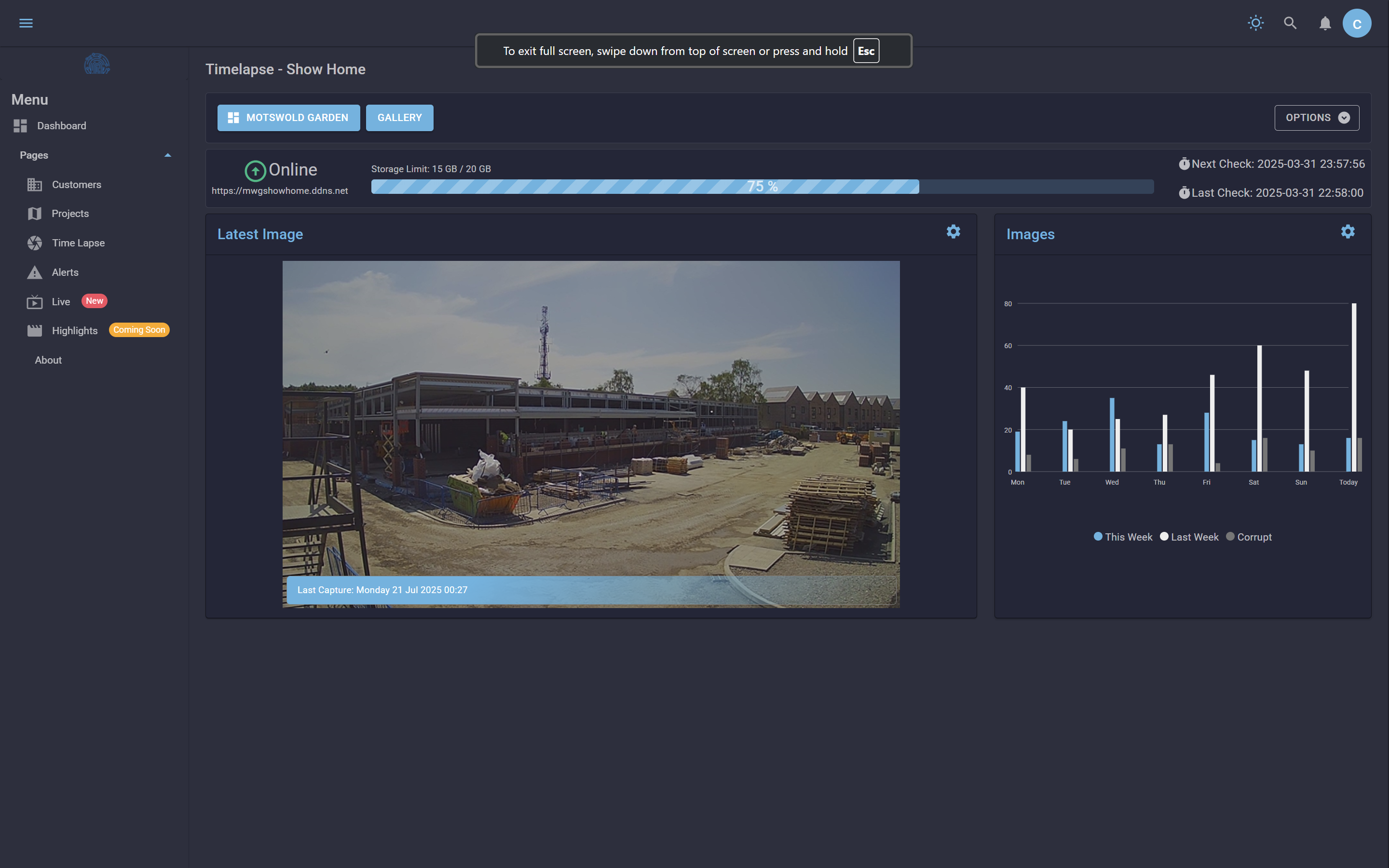 Find Out More →Get a sleek, branded web viewer for your clients and stakeholders. Easily embed or share a secure link to your time-lapse — perfect for reporting, marketing, or simply showing off your hard work.